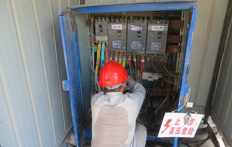 項目建設、夏季檢修時期,臨時用電非常多,平均每天要拆、接臨時電4到5處,檢查臨時電七八十處。運行五部的伙伴們平均每天要走5到6公里,他們每天都在用自己的雙腳丈量著新啟元的變化。接完臨時電已經是13:13分了,老楊稍事休息了一下。13:30分他又走在了巡檢臨時用電的路上。