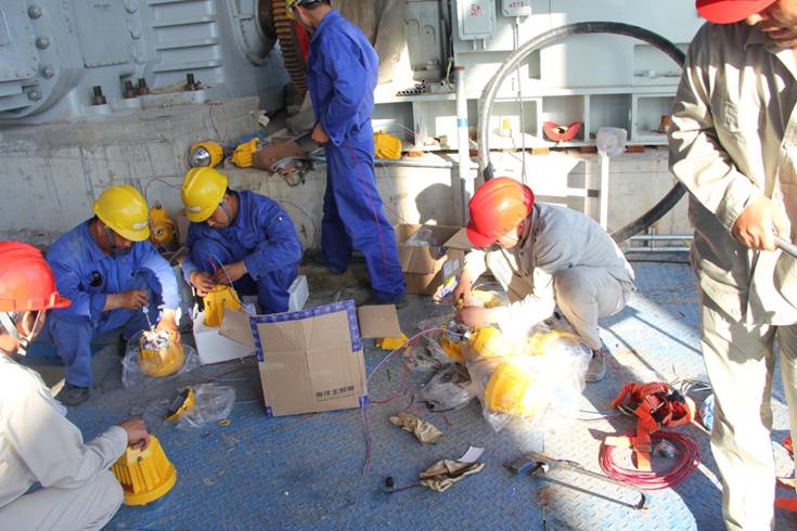經過了三個半小時的奮戰,終于在19:15分準時送電。黑暗的管廊、鐵塔、平臺瞬間亮起,無數燈盞仿佛群星閃爍,伙伴們開心地笑了。而這時的老楊還沒有吃晚飯。