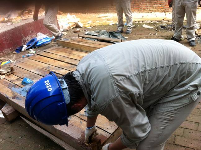 為盡快完成清理工作,大家不停地忙碌著,沒人在意汗水浸濕的衣服。在這一天,大家交流的不是抱怨、不是疲勞,而是因勞動交流產生的融合。