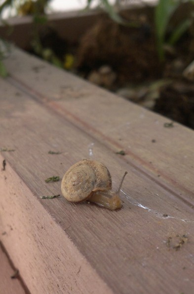無意中,拍到了一只蝸牛,它當時是在蹣跚得前行。這只蝸牛讓我想起了兒時的一首童謠: