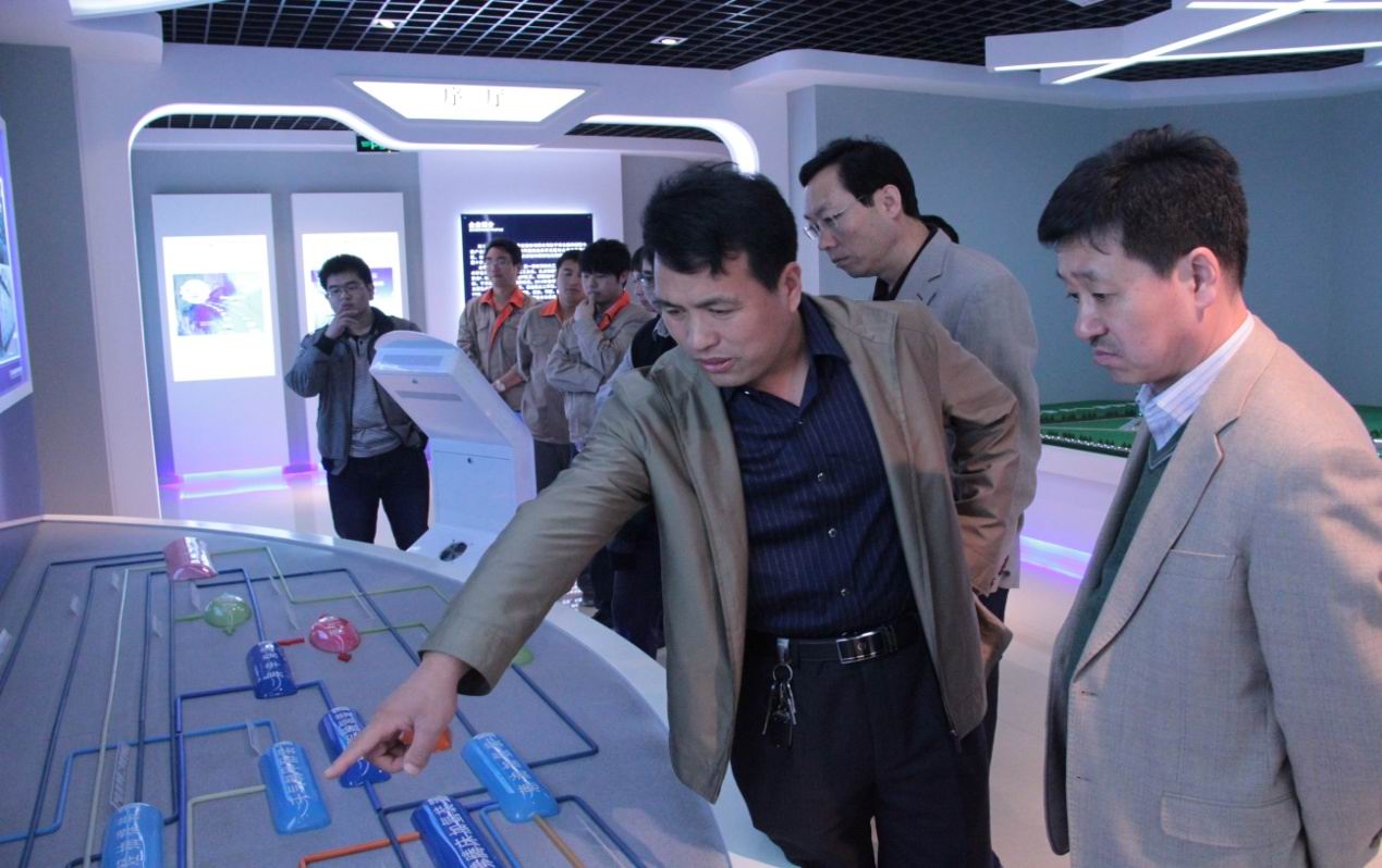 會議前,雙方一同來到新啟元展廳,就公司基本情況、現有裝置、人文等方面進行介紹,期間,雙方領導還就公司裝置工藝循環流程展開討論。
