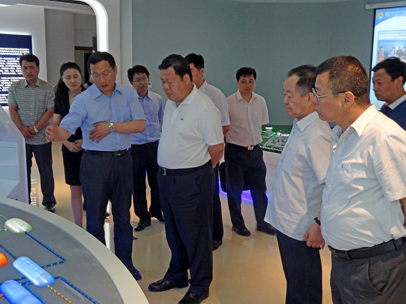 考察團首先參觀了公司展廳,申總對新啟元公司的循環經濟發展模式和清潔環保工藝流程表示贊賞,當聽到公司蒽油加氫項目、異辛烷項目規模時,更是連聲稱贊。