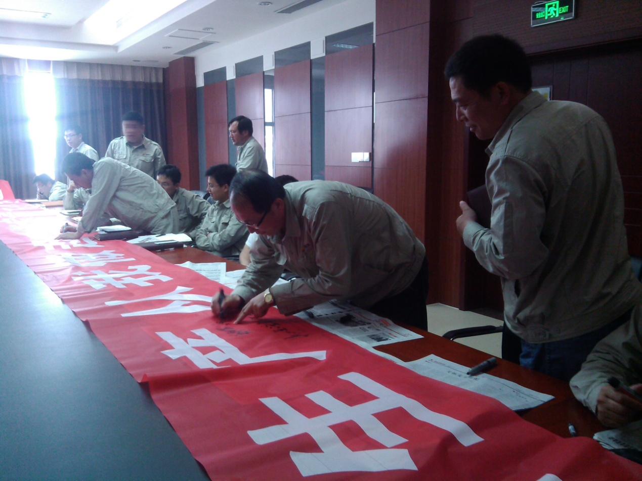 在安全生產月啟動儀式結束后,與會人員把“我為安全說句話”的內容和姓名簽在條幅上,表達出每個人對待安全生產的認識。
