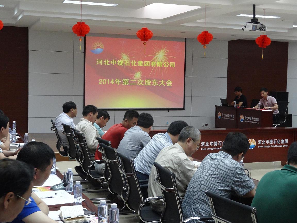 6月15日,河北中捷石化集團在新啟元公司科研樓第6樓會議室組織召開了2014年第二次股東大會,研討下一階段發(fā)展規(guī)劃,確定集團未來建設(shè)目標。集團董事長王振華、總經(jīng)理于國臣等共計41位股東參加了本次大會。