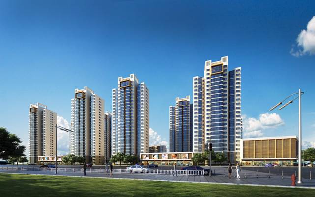 項目總占地110畝、總建筑面積為22萬平方米、由12橦高層住宅樓分別為28層、24層、17層12層、11層的住宅及沿街商鋪組成。