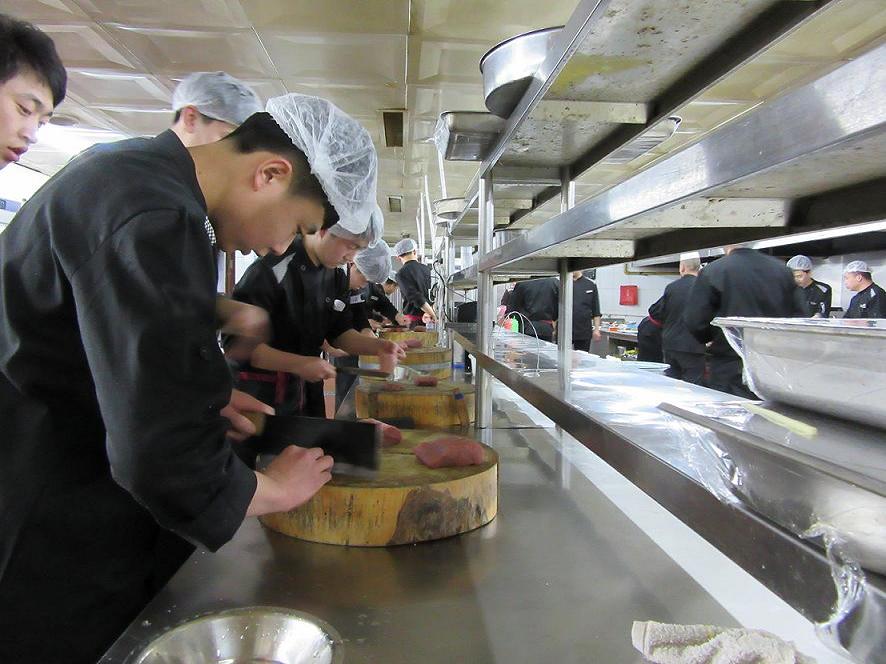 華悅酒店經過精心組織縝密安排于3月28日下午2點,在華悅凱旋酒店二樓廚房舉辦廚藝大賽,大賽特聘請同行酒店三位大廚評出一二三等獎,現場氣氛十分活躍。大賽分為三個部分;一是砧板比賽刀工,在規定時間內看誰切的土豆絲和肉絲多且勻,二是打荷人員比賽菜盤的裝飾,在規定時間內看誰的盤飾漂亮且新意,三是灶上比賽新菜創新,看誰的菜色、香、味佳。