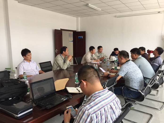 公司副總經理劉立新、健康安全環保部經理及公司HSE管理人員在消防樓會議室進行了接待。在副總經理劉立新對公司現狀簡要介紹之后,專家組代表就此次檢查的目的和流程同與會人員進行了短暫的交流。