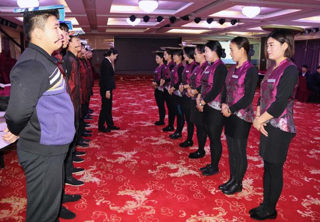 餐飲服務(wù)業(yè)是社會(huì)文明的窗口,餐飲業(yè)的服務(wù)質(zhì)量是酒店日常管理的中心工作。全體員工都要有質(zhì)量意識(shí),管理人員更要樹立服務(wù)質(zhì)量觀念。黃驊華悅凱旋大酒店為了提檔升級(jí),打造精品,以提升服務(wù)質(zhì)量為著點(diǎn),將酒店培訓(xùn)工作做扎實(shí)、做到實(shí)處,近日組織開展了一系列培訓(xùn)工作: