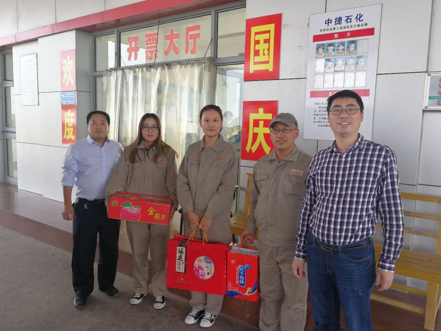 金秋時(shí)節(jié),丹桂飄香,又是一年中秋月圓時(shí)。10月4日,河北中捷石化集團(tuán)董事長(zhǎng)王振華、總經(jīng)理于國(guó)臣攜集團(tuán)領(lǐng)導(dǎo)班子來到華辰石油公司第一加油站,親切慰問了節(jié)日期間仍然堅(jiān)守在一線的加油員工,并向他們送去了節(jié)日的祝福和慰問品。
