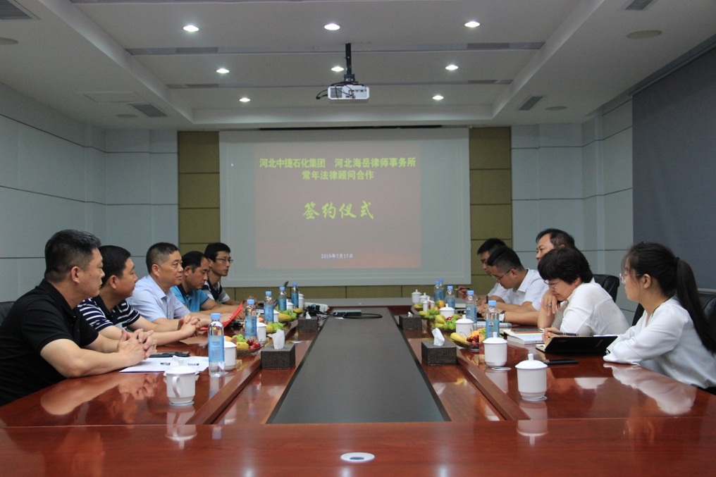 喬總指出,法律顧問貫穿于企業運行的各個領域,有著規范建設、防范風險的重要作用,為企業的經營管理進行事前參謀、事中監控、事后補救的工作,以實現企業價值的最大化。雙方既是老朋友更是新伙伴,雖然常年法律顧問合作今年是第一年,但從業務上,雙方已經有過很多接觸與合作,彼此有著深刻、良好的印象。河北海岳律師事務所具有深厚的法學理論功底、精湛的業務技能和豐富的執業經驗,以及配合默契的團隊作戰精神,在為社會各界提供優質法律服務中樹立了良好的口碑。同時,河北中捷石化集團作為渤海新區經濟發展中的一顆明星,需要專業化、高素質的法律顧問,以推動企業實現“持續、穩定、創新、發展”,雙方的合作也必將實現強強聯合,互助共贏。