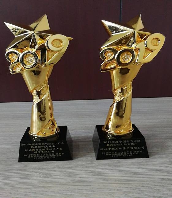 會議上,河北中捷石化集團有限公司榮獲“2019年度中國北方大區最具影響力地方煉廠”稱號、河北新啟元能源技術開發股份有限公司斬獲“2019年度中國燃氣深加工行業最具影響力企業”稱號。