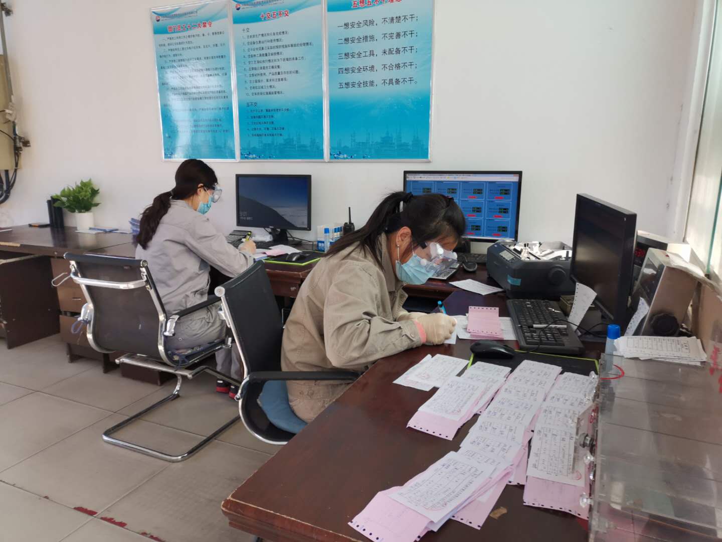 工作中,她們不僅要做好自身防護(hù),還要督促司機(jī)進(jìn)廠后做好相關(guān)防護(hù)。她們自己錄制了疫情防控溫馨提示,告知司機(jī)疫情期間的注意事項(xiàng)和工作流程。面對(duì)司機(jī)們偶爾的不理解,就面帶微笑耐心的反復(fù)解釋說明,她們知道越是這種時(shí)刻越不能掉以輕心,越要做好服務(wù)。正是因?yàn)樗齻兊娜母冻霰WC了收發(fā)系統(tǒng)的平穩(wěn)運(yùn)行,在疫情防控的關(guān)鍵時(shí)刻地磅房沒有出現(xiàn)任何問題。