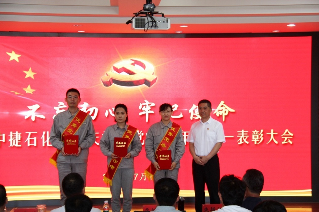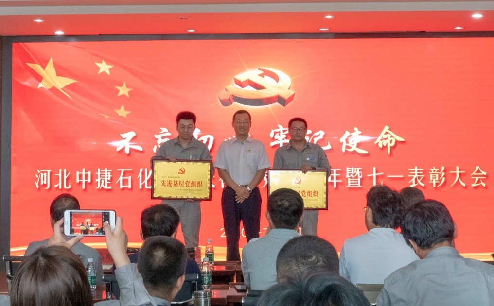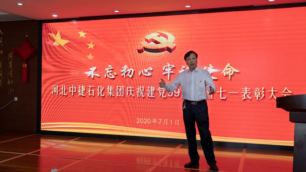 集團(tuán)公司訊(通訊員 朱鑫林)為熱烈慶祝和紀(jì)念中國共產(chǎn)黨成立99周年,表彰一批在黨建和集團(tuán)事業(yè)發(fā)展建設(shè)中涌現(xiàn)出來的先進(jìn)基層黨組織、優(yōu)秀黨務(wù)工作者、優(yōu)秀共產(chǎn)黨員,勉勵(lì)廣大黨員不忘初心,牢記使命,繼承和發(fā)揚(yáng)黨的優(yōu)良傳統(tǒng),7月1日,河北中捷石化集團(tuán)黨委組織召開了慶祝建黨99周年暨“七一”表彰大會。原中捷企業(yè)黨工委書記沈?qū)W明同志,集團(tuán)黨委書記于國臣同志,集團(tuán)總經(jīng)理喬樹華同志,以及各所屬黨支部書記,各所屬單位董事長、總經(jīng)理,2019-2020年度先進(jìn)基層黨組織代表、優(yōu)秀黨務(wù)工作者、優(yōu)秀共產(chǎn)黨員,各支部黨員代表共計(jì)70余人參加了此次活動(dòng)。