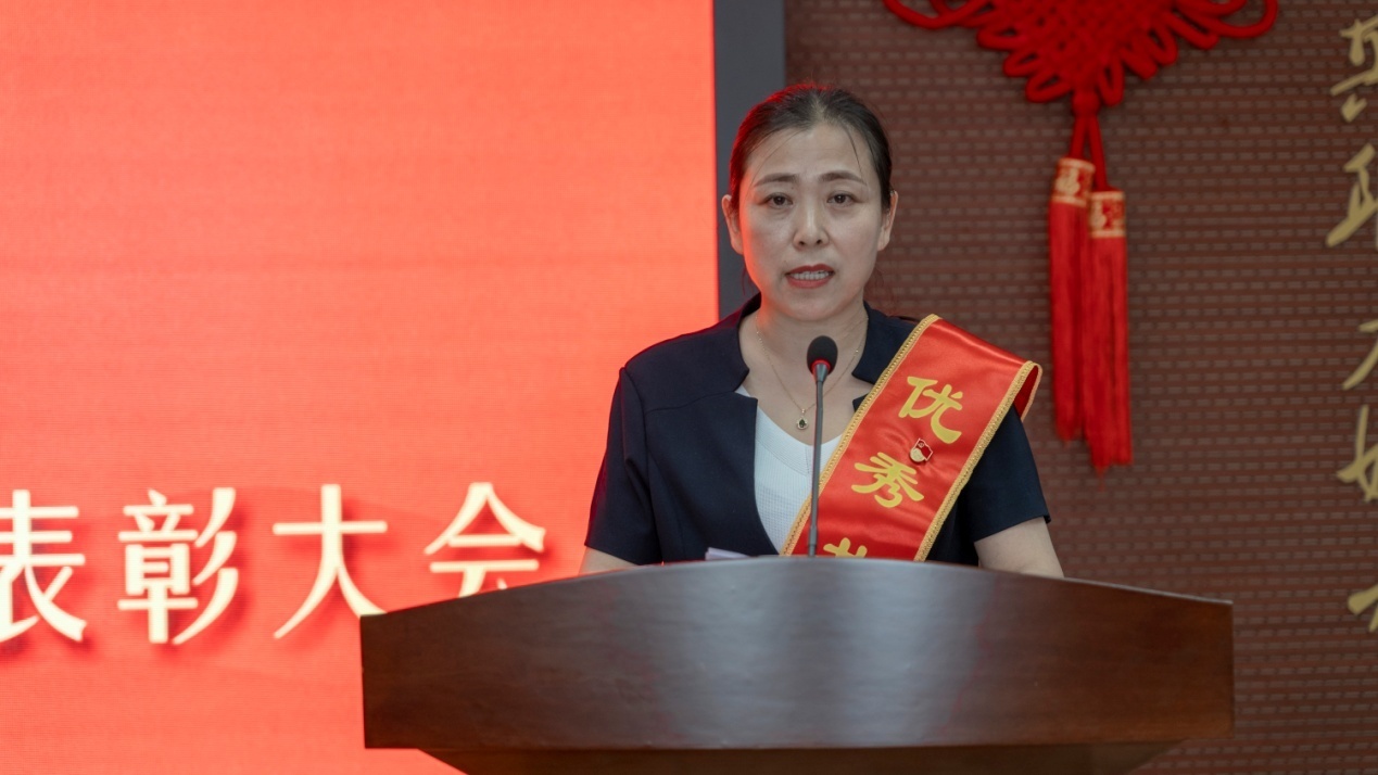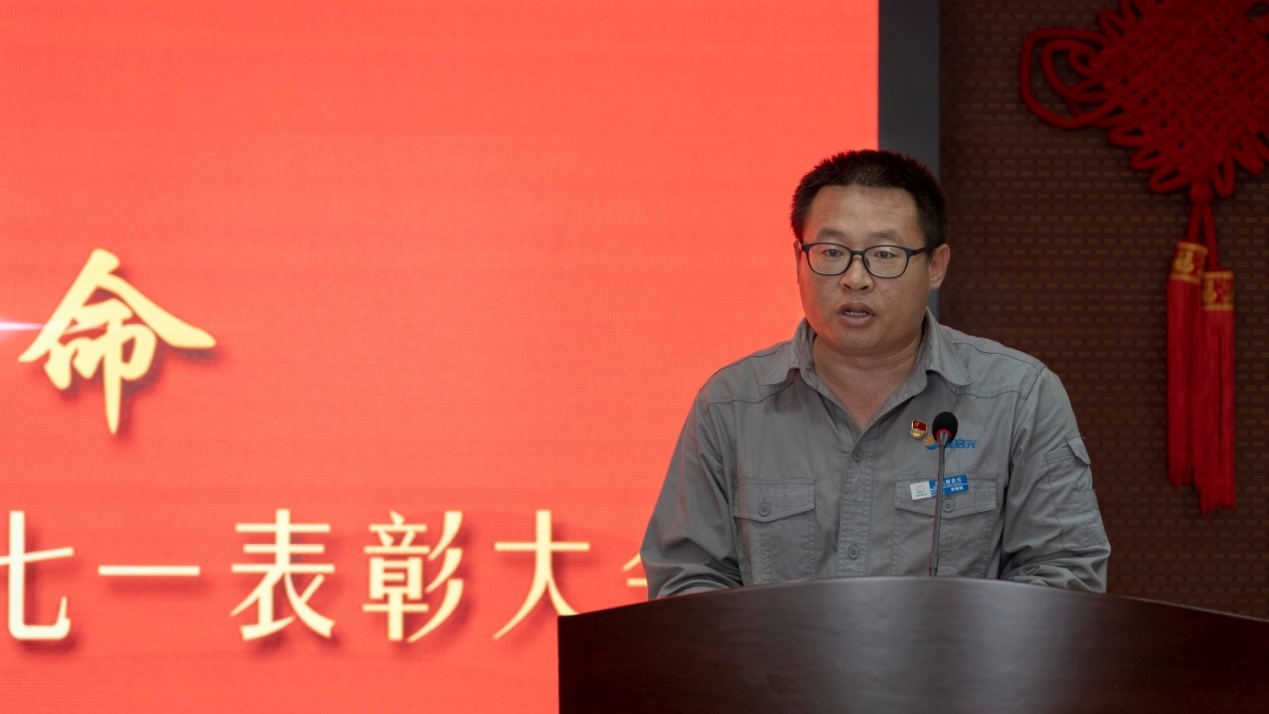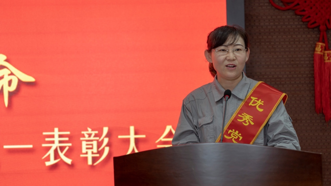 優(yōu)秀共產(chǎn)黨員代表、優(yōu)秀黨務(wù)工作者代表、先進(jìn)基層黨組織代表依次上臺發(fā)言。