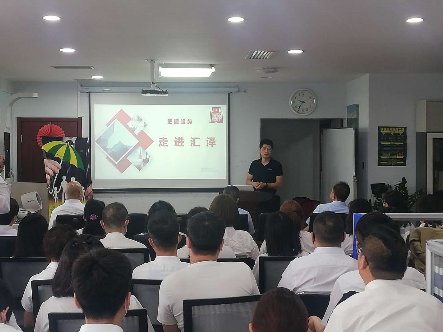 隨后,牛總通過PPT宣講的方式為天津分公司進行加油打氣。宣講內容中,牛總首先從匯澤保險公司的發展史講起,到后面介紹的匯澤保險七大優勢(強大的股東、雄厚的資本、一流的團隊、創新的模式、優越的制度、精良的產品、廣覆的網絡)及匯澤保險取得的成績,再到最后的升華——對集團公司的介紹。在聽取了牛總的宣講后,天津分公司的員工們斗志滿滿,尤其一線業務人員,更是提出“苦干、實干、加油干”的口號。