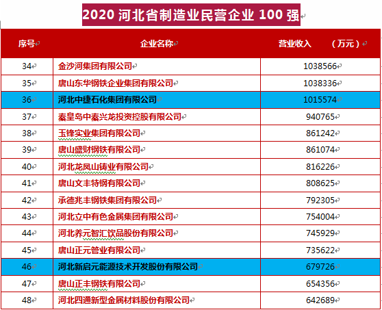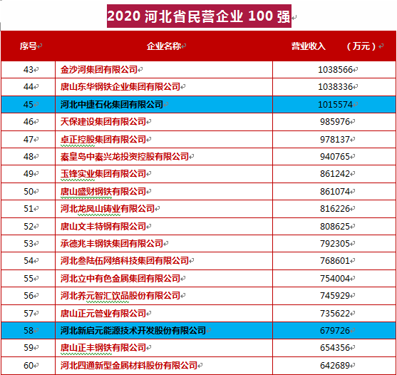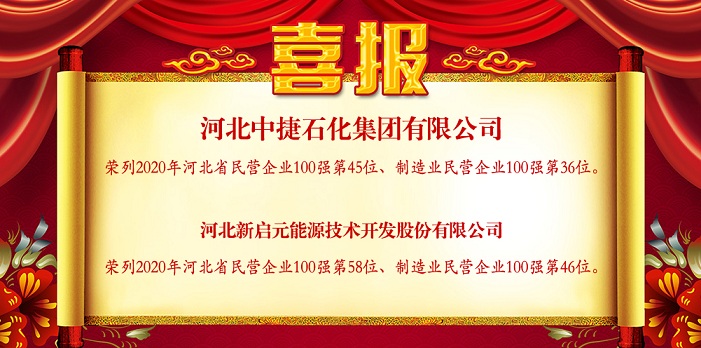 新啟元公司訊(通訊員  王世明)9月25日,河北省民營企業(yè)百強暨民營企業(yè)社會責任報告發(fā)布會上,河北省工商聯(lián)發(fā)布了2020年河北省民營企業(yè)100強榜單、制造業(yè)100強榜單、服務業(yè)100強榜單。河北中捷石化集團有限公司、河北新啟元能源技術開發(fā)股份有限公司榜上有名。