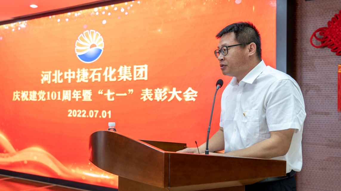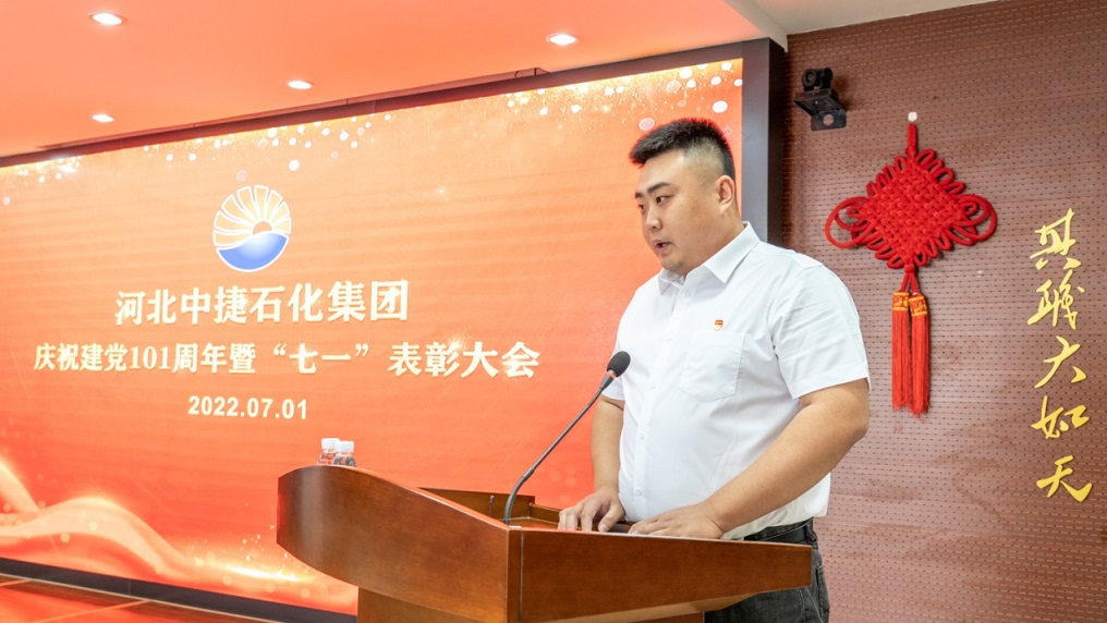 集團公司訊 為隆重紀念中國共產黨成立101周年,繼續深入開展黨史學習教育,進一步激發基層黨組織戰斗堡壘作用和黨員先鋒模范作用,同時為選優樹先、弘揚正氣,不斷增強基層黨組織和廣大黨員干部職工的凝聚力、號召力和戰斗力,7月1日,河北中捷石化集團黨委組織召開慶祝建黨101周年暨“七一”表彰大會。原中捷企業黨工委書記沈學明同志,集團黨委書記于國臣同志,集團黨委副書記、總經理喬樹華同志,集團黨委副書記、紀委書記朱振江同志以及各所屬黨(總)支部書記,各支部黨員代表參加了此次活動。