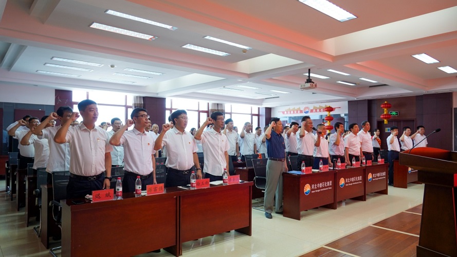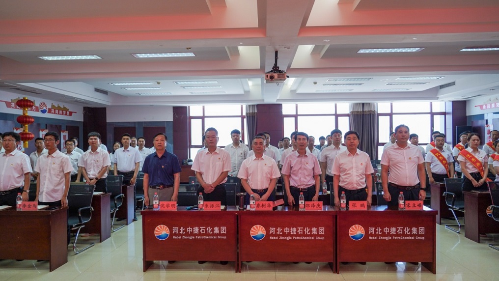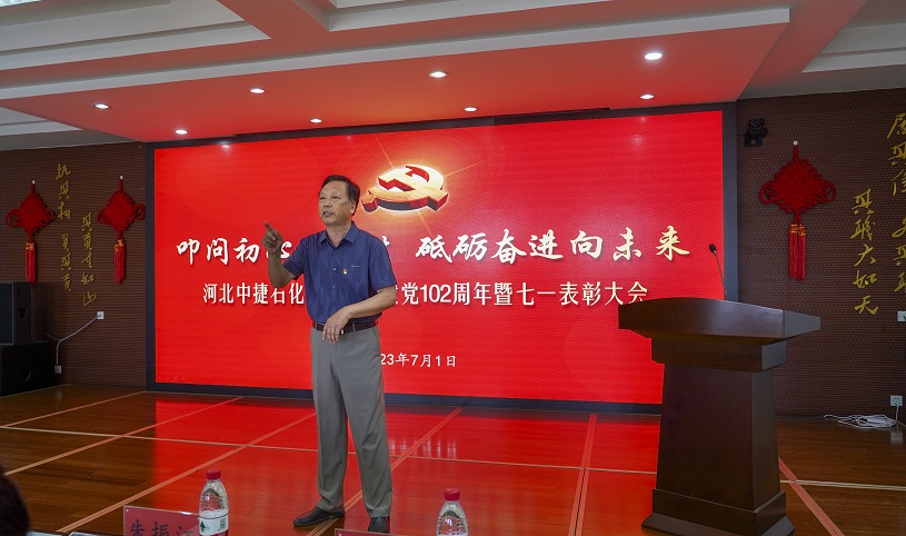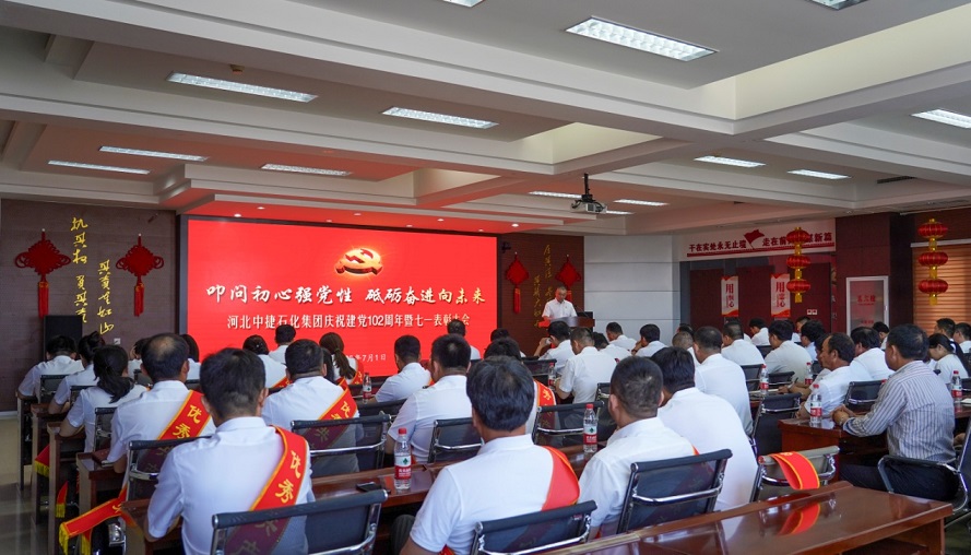 集團(tuán)公司訊 為隆重紀(jì)念中國共產(chǎn)黨成立102周年,深入開展學(xué)習(xí)貫徹習(xí)近平新時(shí)代中國特色社會(huì)主義思想主題教育,激勵(lì)各基層黨組織和黨員充分發(fā)揮戰(zhàn)斗堡壘作用和先鋒模范作用,同時(shí)為弘揚(yáng)先進(jìn)典型,彰顯榜樣力量,不斷增強(qiáng)基層黨組織的創(chuàng)造力、凝聚力、戰(zhàn)斗力,7月1日,河北中捷石化集團(tuán)黨委組織召開了慶祝建黨102周年暨“七一”表彰大會(huì)。中捷產(chǎn)業(yè)園區(qū)組織人事部副部長、非公有制經(jīng)濟(jì)和社會(huì)組織黨委書記邵澤慶同志,原中捷企業(yè)黨工委書記沈?qū)W明同志,集團(tuán)黨委副書記、總經(jīng)理喬樹華同志,集團(tuán)黨委副書記、紀(jì)委書記朱振江同志以及各所屬黨(總)支部書記,各支部黨員代表共計(jì)60余人參加了此次活動(dòng)。