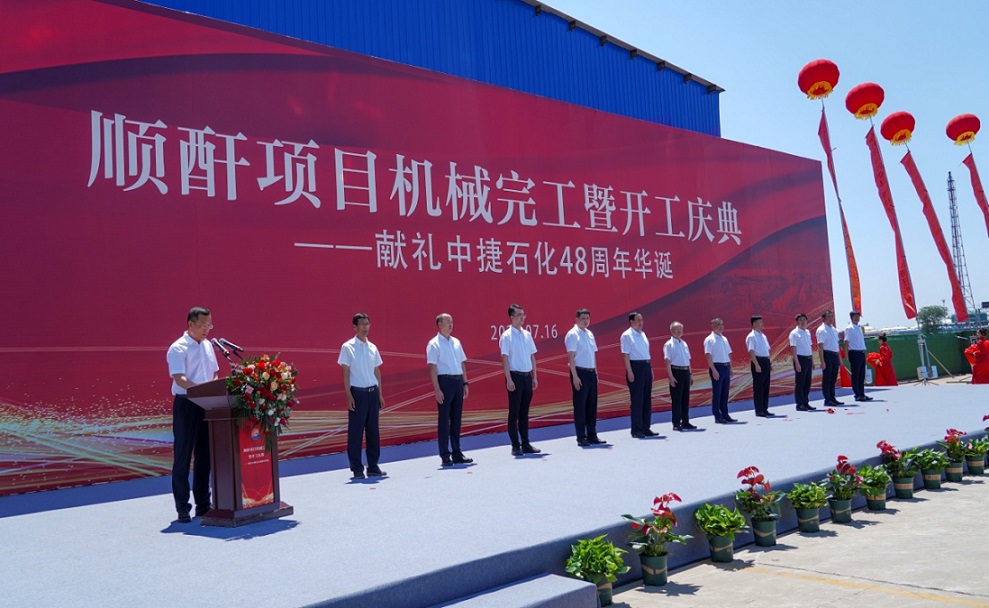 新啟元公司訊 7月16日,晴空萬里,風清散暑,順酐項目現(xiàn)場彩旗飄揚,伙伴們精神抖擻。新啟元公司“獻禮中捷石化48周年華誕——7月16日順酐項目機械完工暨開工慶典”盛裝登場。中捷產(chǎn)業(yè)園區(qū)黨組書記、管委會主任孫西讓,河北中捷石化集團董事長王振華,園區(qū)領(lǐng)導(dǎo)孫麟賀,石化辦主任劉峰,河北中捷石化集團總經(jīng)理喬樹華,集團領(lǐng)導(dǎo)張鵬、王猛、劉海軍、李金馬,新啟元公司董事長李志剛、總經(jīng)理劉華冰參加慶典活動。河北中捷石化集團黨委書記于國臣主持盛典。