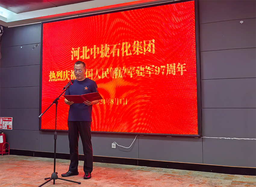 在黃驊華悅凱旋大酒店,大家歡聚同敘,暢談共慶。集團黨委書記于國臣以《弘揚“八一精神”,奮斗石化征程》為題為活動作致辭,于國臣代表集團董事長及集團領導班子,向偉大的中國人民解放軍致以崇高的敬意,向退伍軍人同志們致以親切的問候,并借此機會與大家一起重溫銘記偉大“八一精神”,團結奮斗石化發展征程。