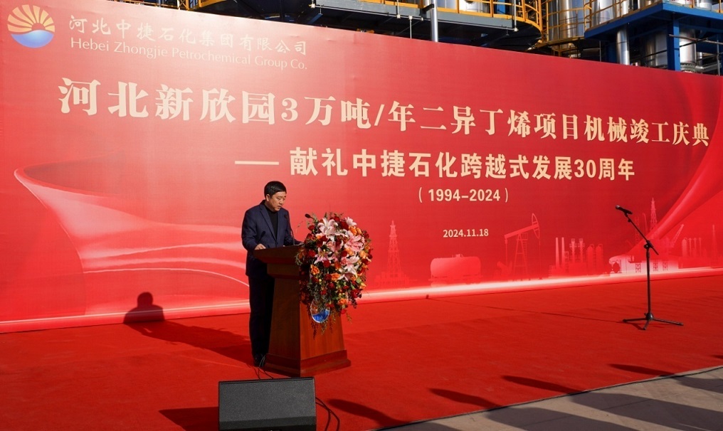 集團公司訊 11月18日上午,河北中捷石化集團組織舉辦“獻禮中捷石化跨越式發展30周年”——3萬噸/年二異丁烯項目機械竣工慶典。集團董事長王振華、集團黨委書記于國臣、集團總經理喬樹華,以及集團公司領導,各所屬單位副總級以上管理人員、財務經理、員工代表,參建方項目代表、工人代表等共計100余人參加。活動由集團副總經理張鵬主持。