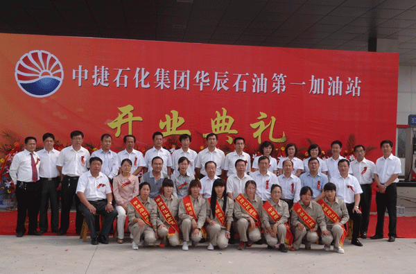 開業(yè)慶典結束后,參加典禮的各位領導和嘉賓,以及第一加油站的員工進行了合影留念。