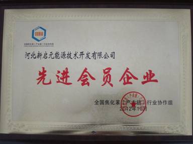 全國焦化苯行業協作組授予新啟元“先進會員企業”榮譽稱號